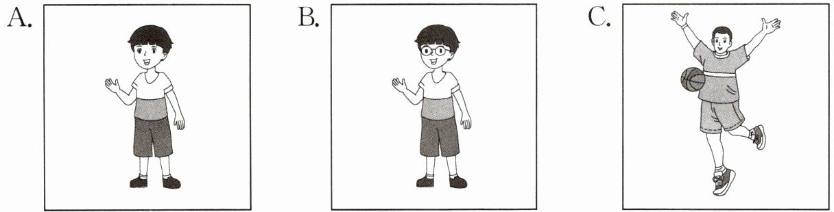 ( )4. What does the boy look like?