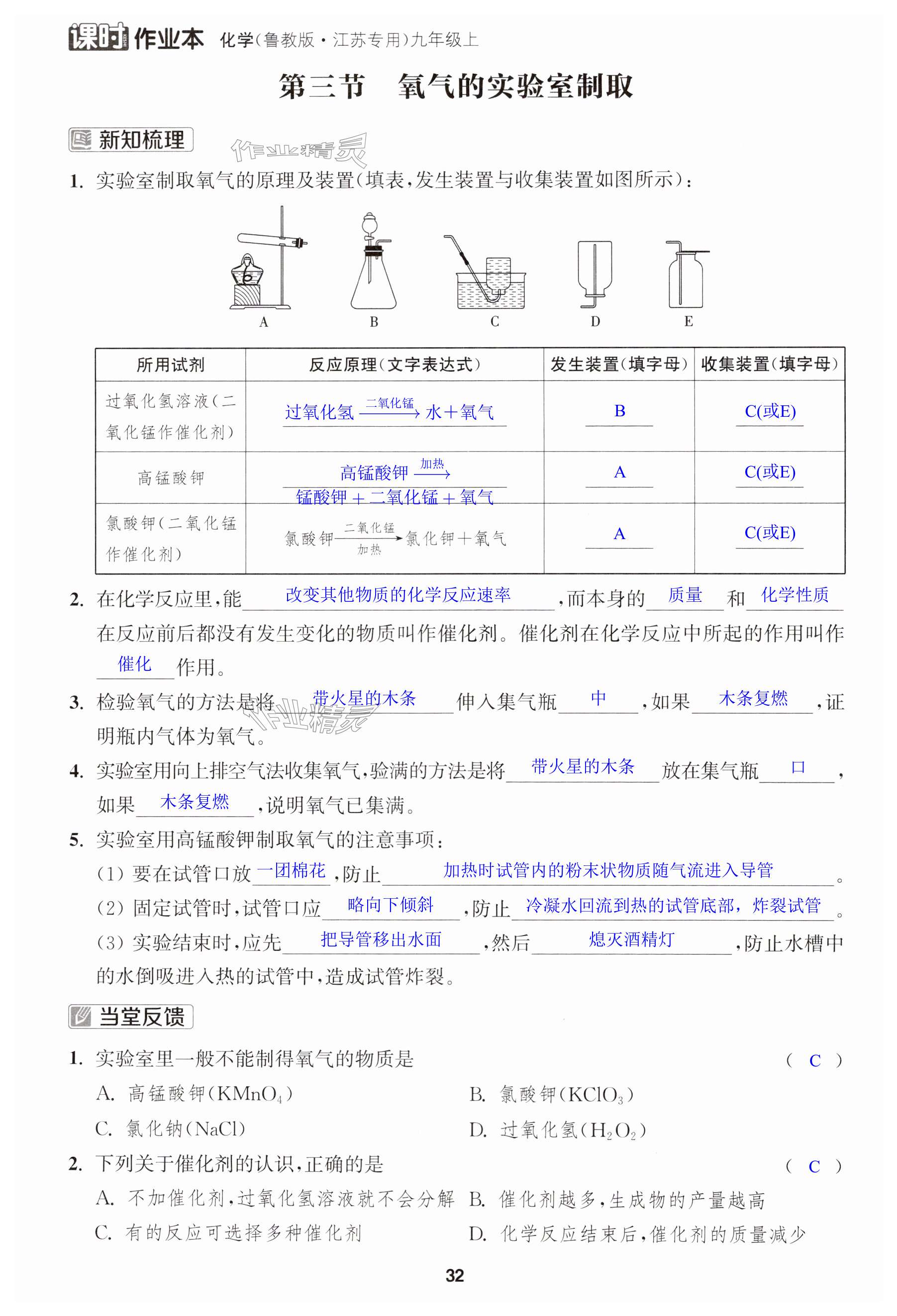 注:目前有些书本章节名称可能整理的还不是很完善,但都是按照顺序排列的,请同学们按照顺序仔细查找。练习册 2024年通城学典课时作业本九年级化学上册鲁教版江苏专版 答案主要是用来给同学们做完题方便对答案用的,请勿直接抄袭。