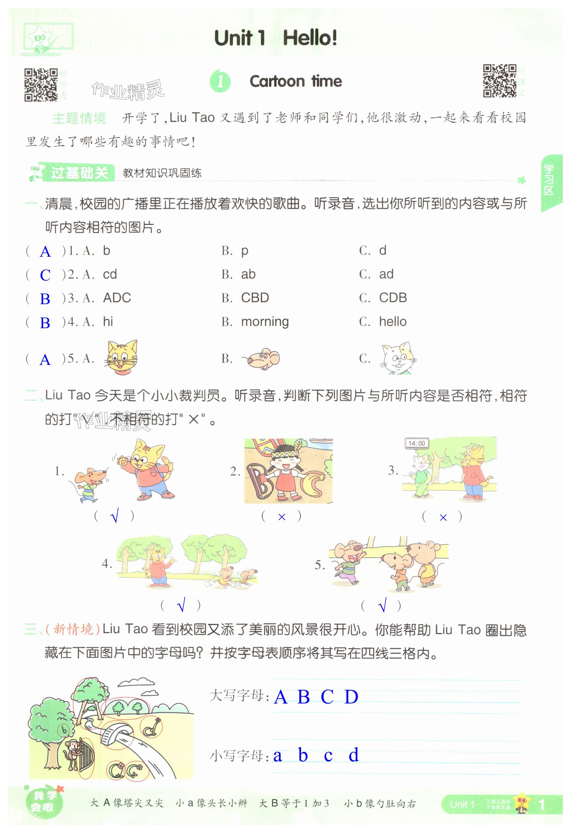 注:目前有些书本章节名称可能整理的还不是很完善,但都是按照顺序排列的,请同学们按照顺序仔细查找。练习册 2024年一遍过三年级英语上册译林版 答案主要是用来给同学们做完题方便对答案用的,请勿直接抄袭。