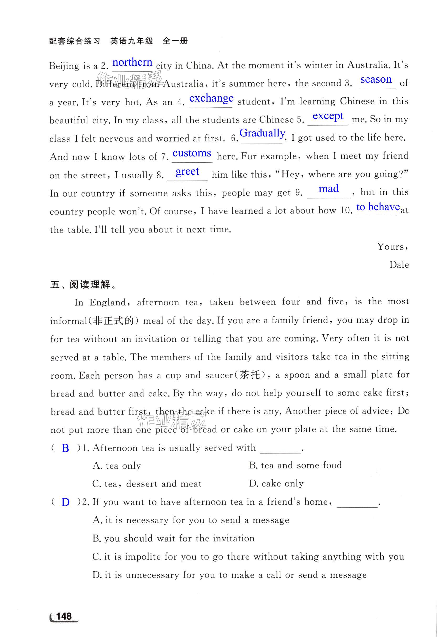 注:目前有些书本章节名称可能整理的还不是很完善,但都是按照顺序排列的,请同学们按照顺序仔细查找。练习册 2024年配套综合练习甘肃九年级英语全一册人教版 答案主要是用来给同学们做完题方便对答案用的,请勿直接抄袭。