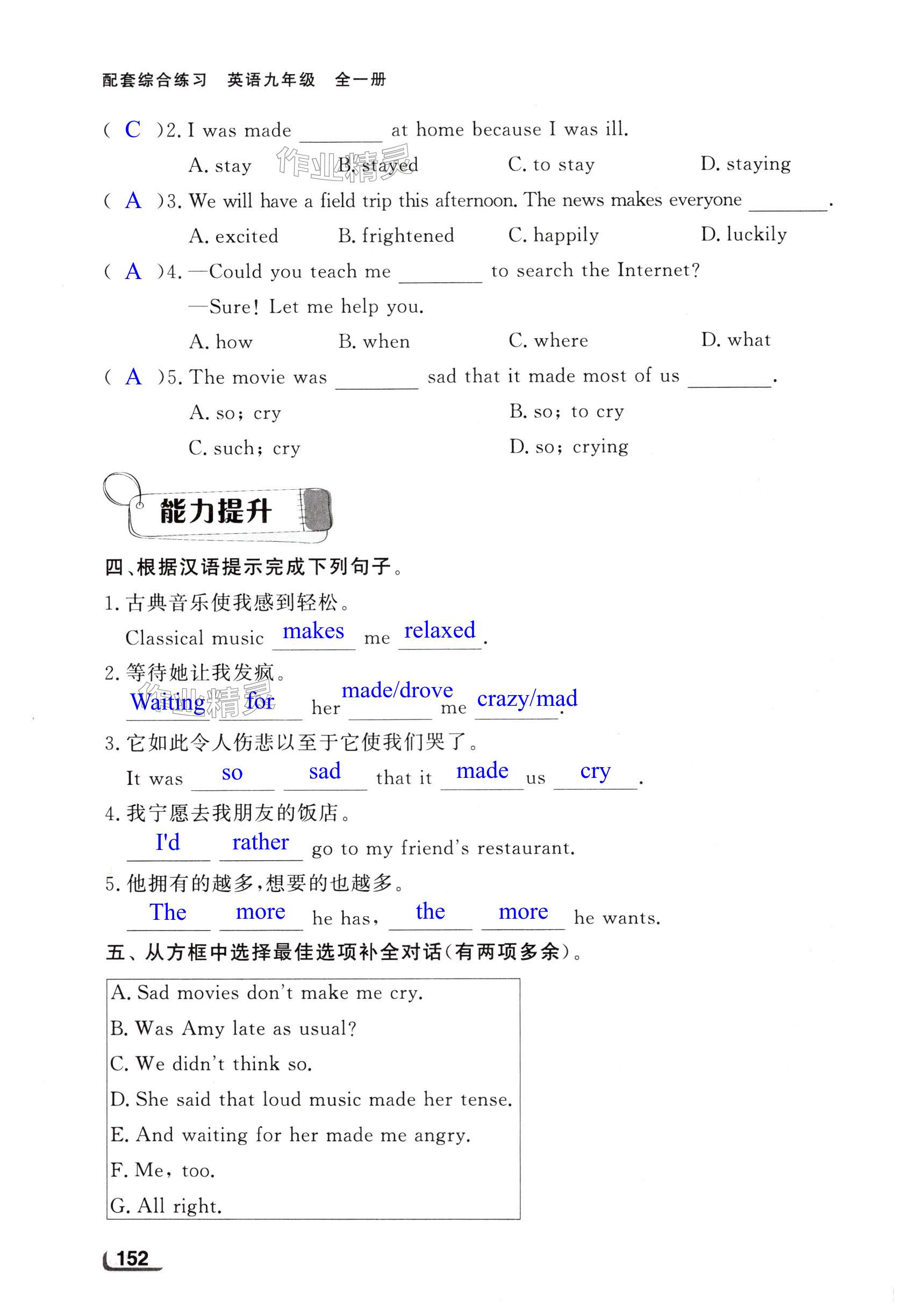 注:目前有些书本章节名称可能整理的还不是很完善,但都是按照顺序排列的,请同学们按照顺序仔细查找。练习册 2024年配套综合练习甘肃九年级英语全一册人教版 答案主要是用来给同学们做完题方便对答案用的,请勿直接抄袭。