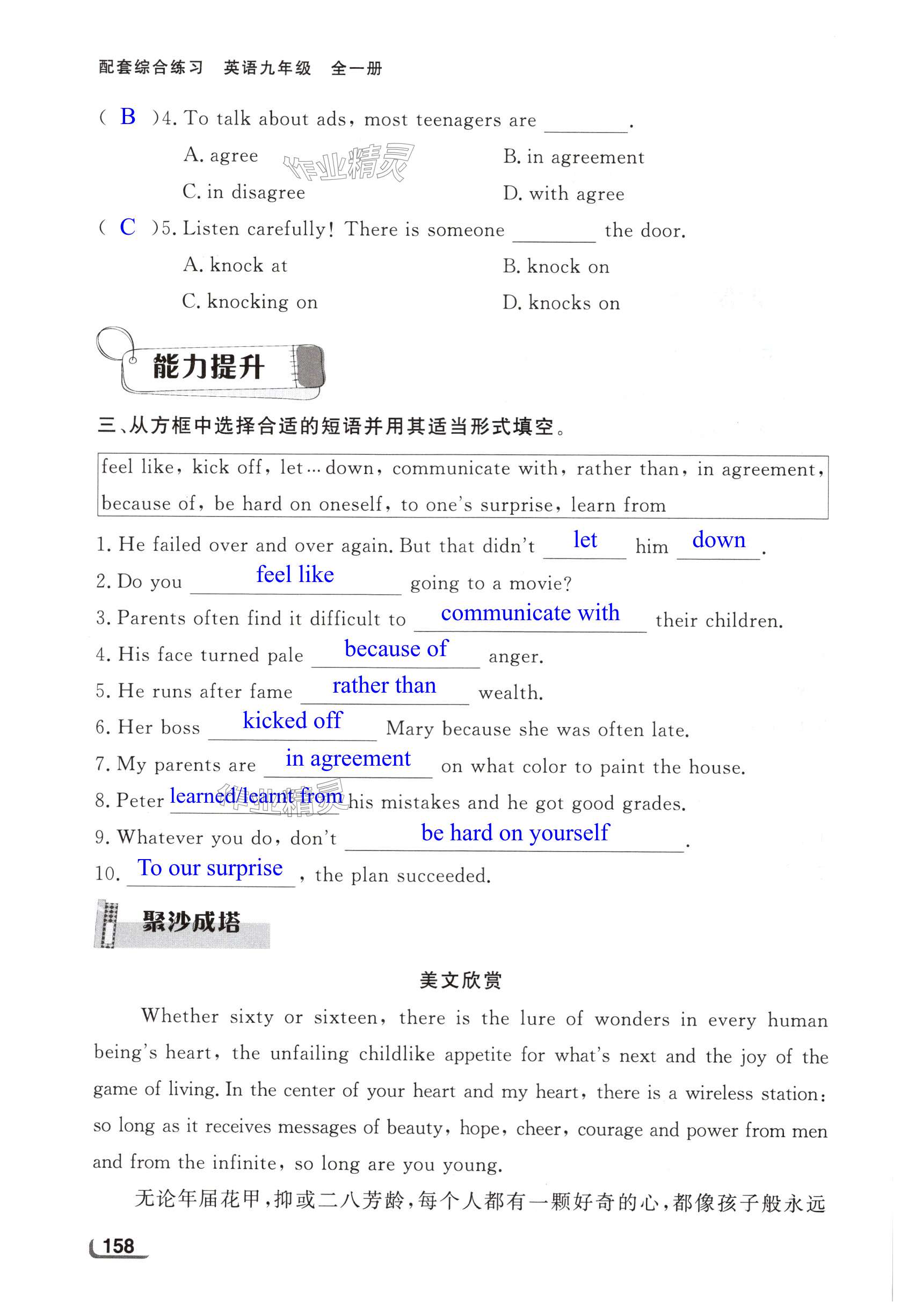 注:目前有些书本章节名称可能整理的还不是很完善,但都是按照顺序排列的,请同学们按照顺序仔细查找。练习册 2024年配套综合练习甘肃九年级英语全一册人教版 答案主要是用来给同学们做完题方便对答案用的,请勿直接抄袭。