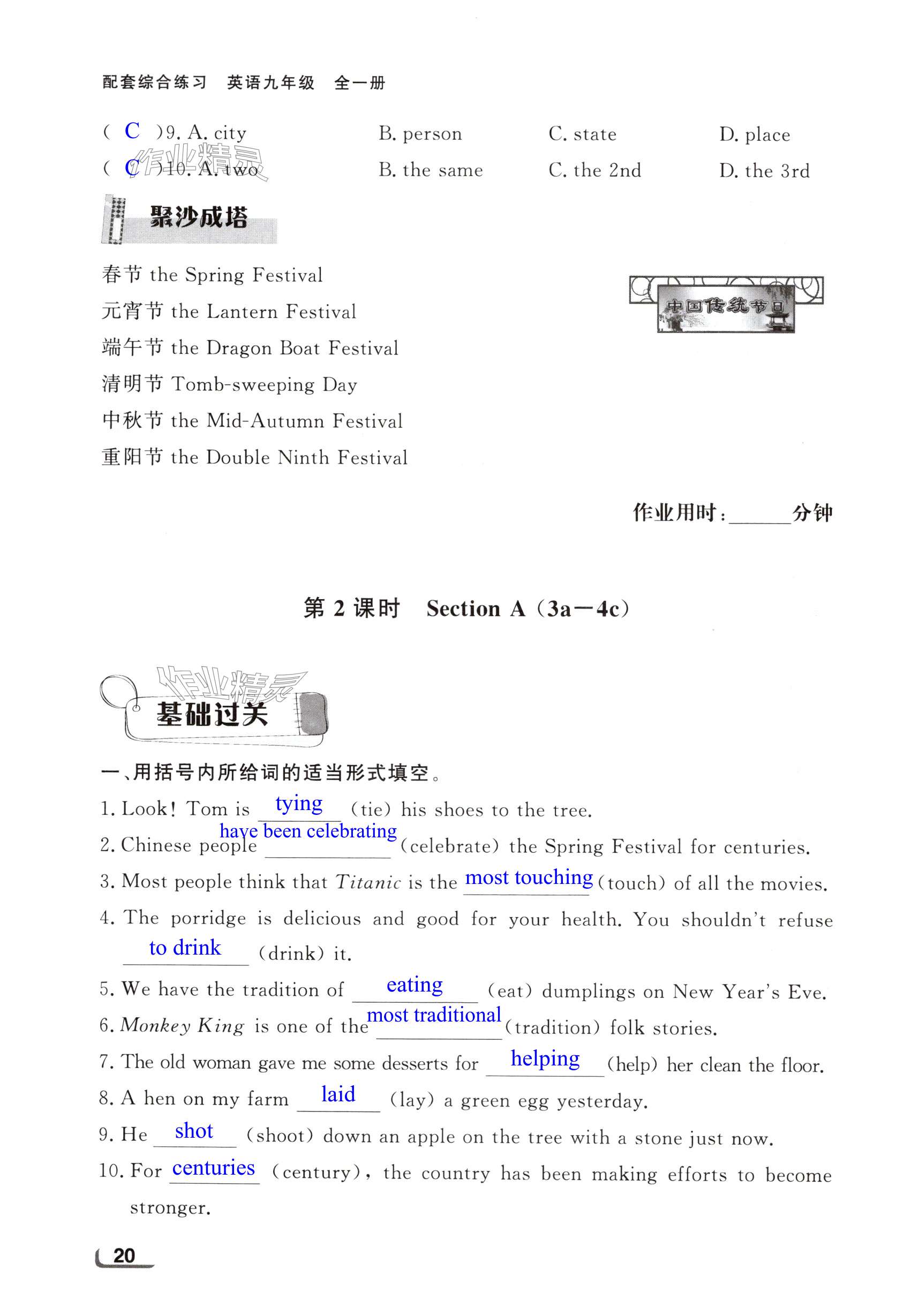 注:目前有些书本章节名称可能整理的还不是很完善,但都是按照顺序排列的,请同学们按照顺序仔细查找。练习册 2024年配套综合练习甘肃九年级英语全一册人教版 答案主要是用来给同学们做完题方便对答案用的,请勿直接抄袭。