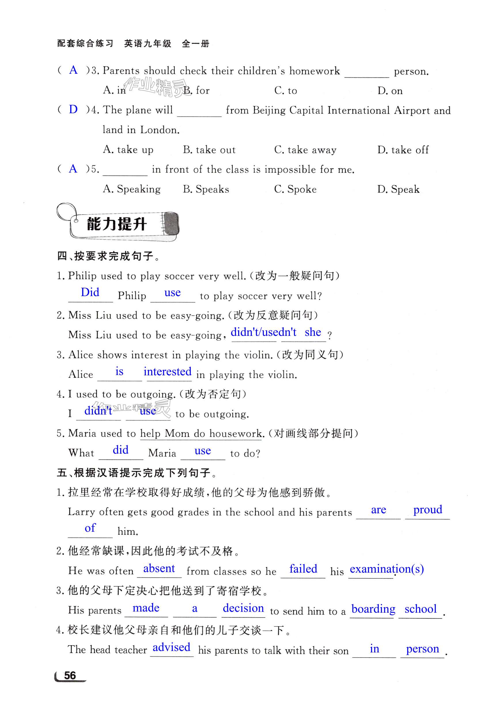 注:目前有些书本章节名称可能整理的还不是很完善,但都是按照顺序排列的,请同学们按照顺序仔细查找。练习册 2024年配套综合练习甘肃九年级英语全一册人教版 答案主要是用来给同学们做完题方便对答案用的,请勿直接抄袭。