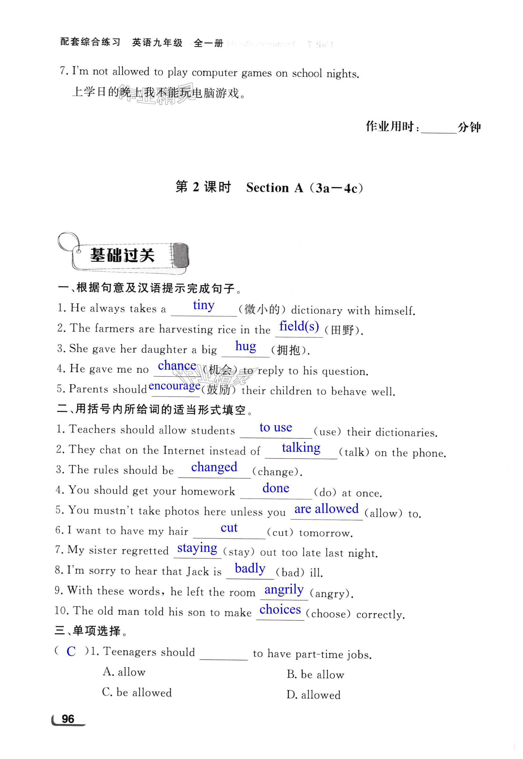 注:目前有些书本章节名称可能整理的还不是很完善,但都是按照顺序排列的,请同学们按照顺序仔细查找。练习册 2024年配套综合练习甘肃九年级英语全一册人教版 答案主要是用来给同学们做完题方便对答案用的,请勿直接抄袭。