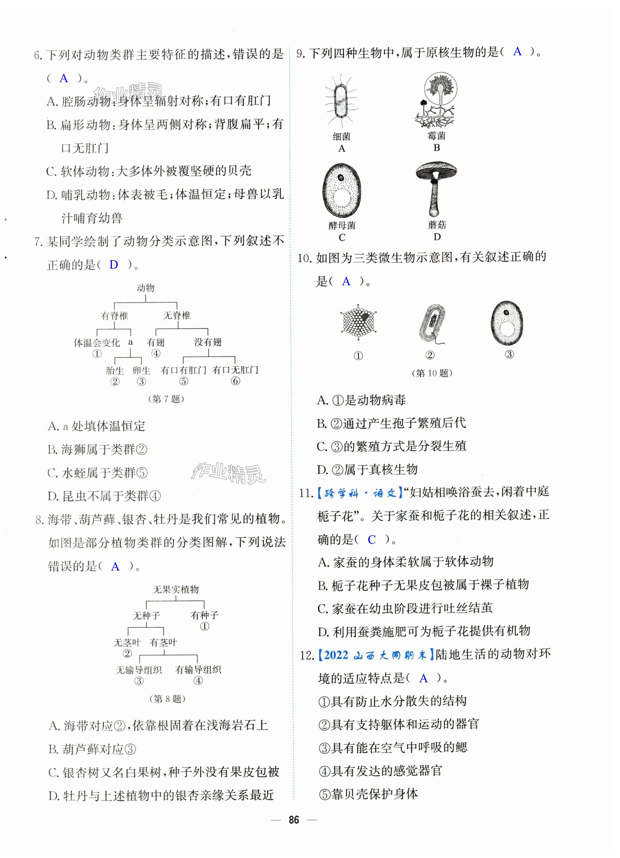 注:目前有些书本章节名称可能整理的还不是很完善,但都是按照顺序排列的,请同学们按照顺序仔细查找。练习册 2024年新编基础训练八年级生物上册苏教版 答案主要是用来给同学们做完题方便对答案用的,请勿直接抄袭。