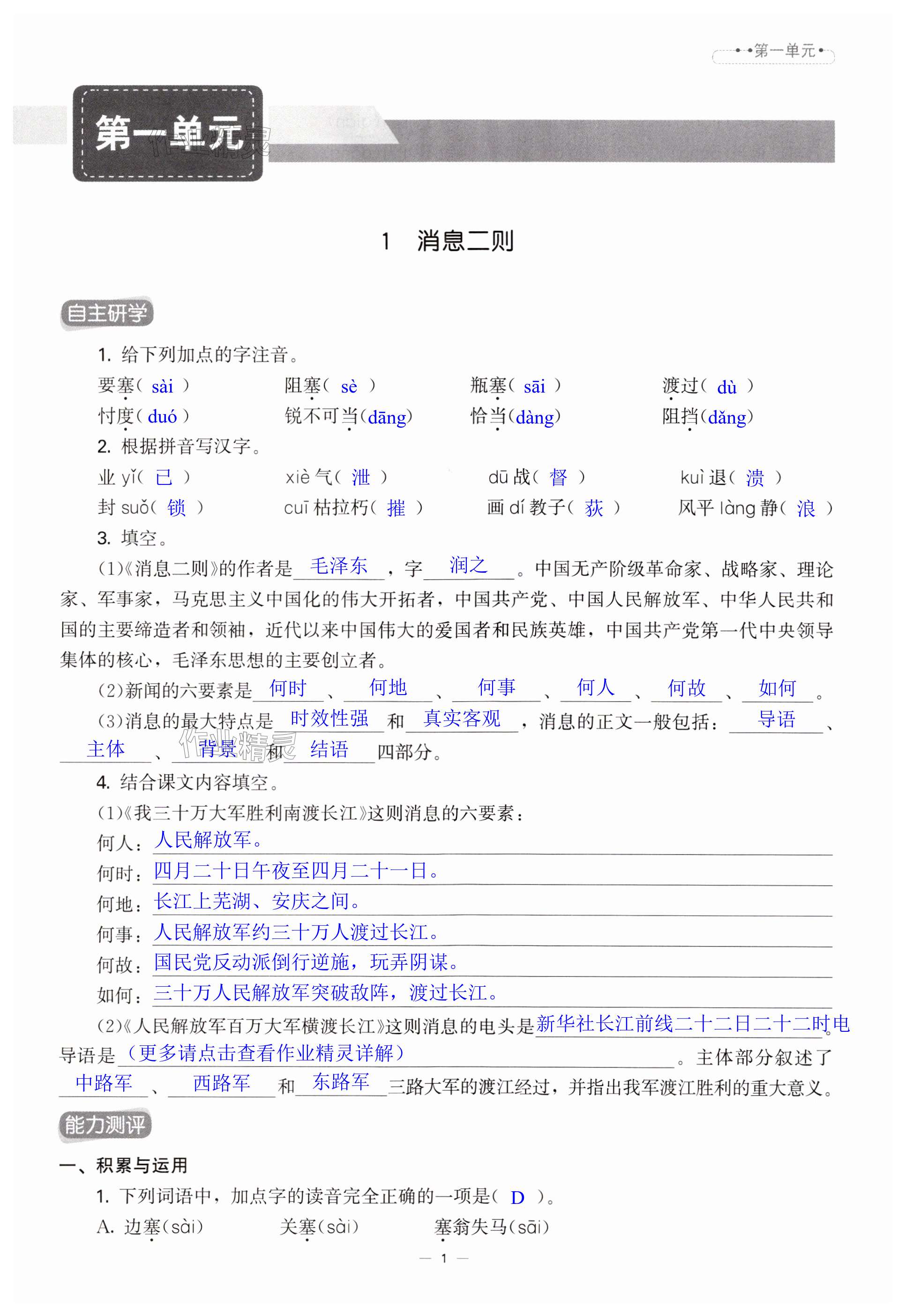 注:目前有些书本章节名称可能整理的还不是很完善,但都是按照顺序排列的,请同学们按照顺序仔细查找。练习册2024年初中同步练习册八年级语文上册人教版北京师范大学出版社答案主要是用来给同学们做完题方便对答案用的,请勿直接抄袭。