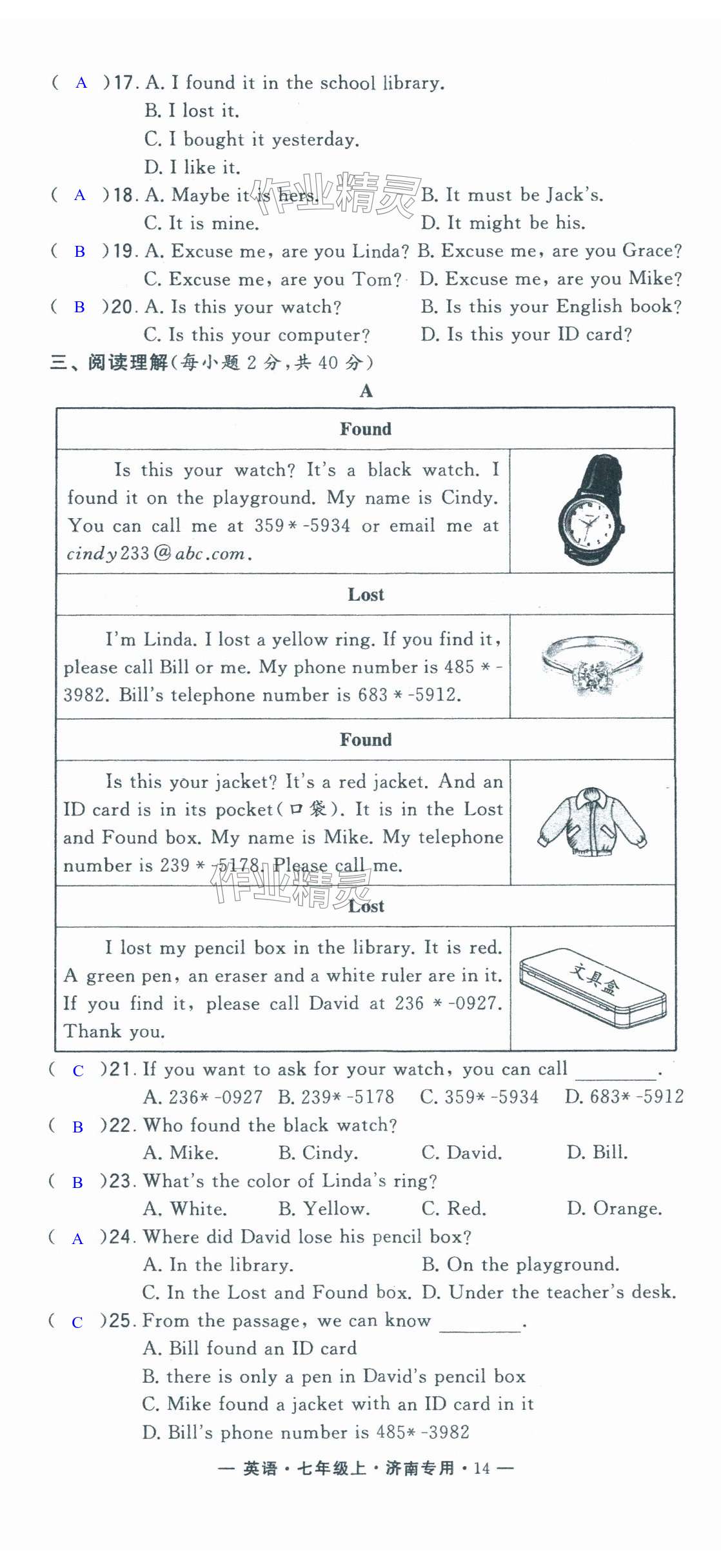 注:目前有些书本章节名称可能整理的还不是很完善,但都是按照顺序排列的,请同学们按照顺序仔细查找。练习册 2024年学霸组合训练七年级英语上册人教版济南专版 答案主要是用来给同学们做完题方便对答案用的,请勿直接抄袭。