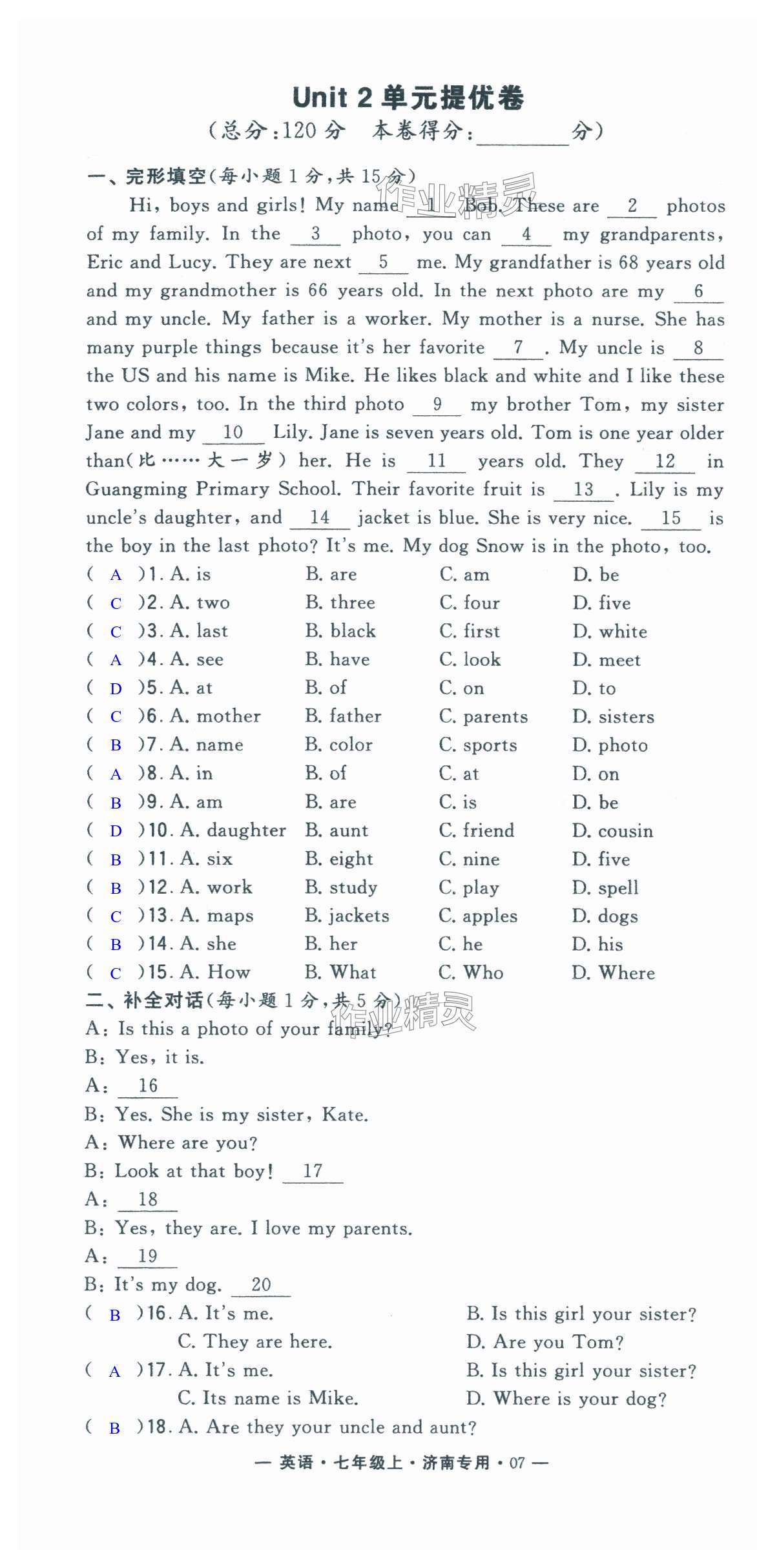 注:目前有些书本章节名称可能整理的还不是很完善,但都是按照顺序排列的,请同学们按照顺序仔细查找。练习册 2024年学霸组合训练七年级英语上册人教版济南专版 答案主要是用来给同学们做完题方便对答案用的,请勿直接抄袭。