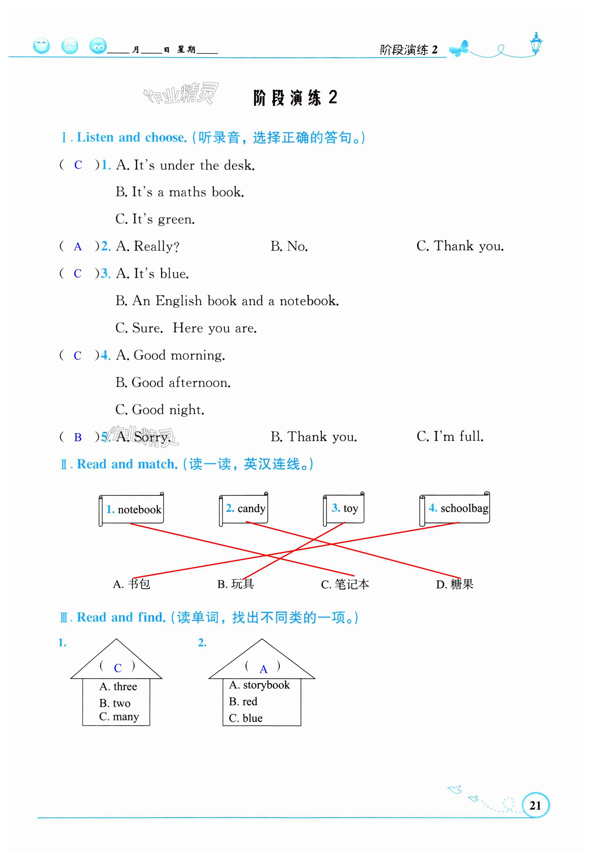 注:目前有些书本章节名称可能整理的还不是很完善,但都是按照顺序排列的,请同学们按照顺序仔细查找。练习册 2024年同步测控优化设计四年级英语上册人教版增强 答案主要是用来给同学们做完题方便对答案用的,请勿直接抄袭。