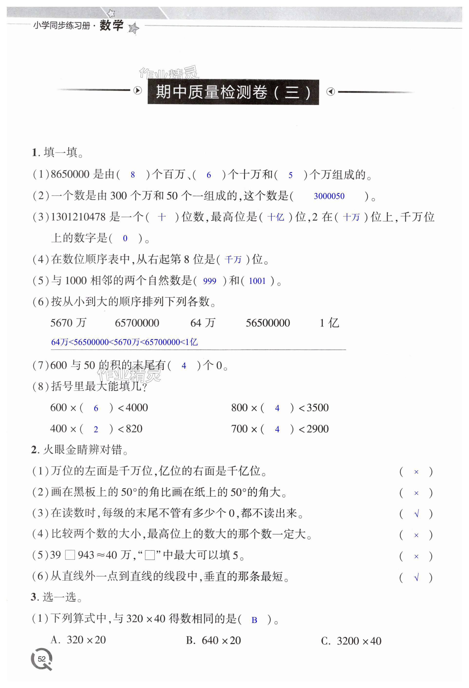 注:目前有些书本章节名称可能整理的还不是很完善,但都是按照顺序排列的,请同学们按照顺序仔细查找。练习册 2024年同步练习册山东四年级数学上册青岛版 答案主要是用来给同学们做完题方便对答案用的,请勿直接抄袭。