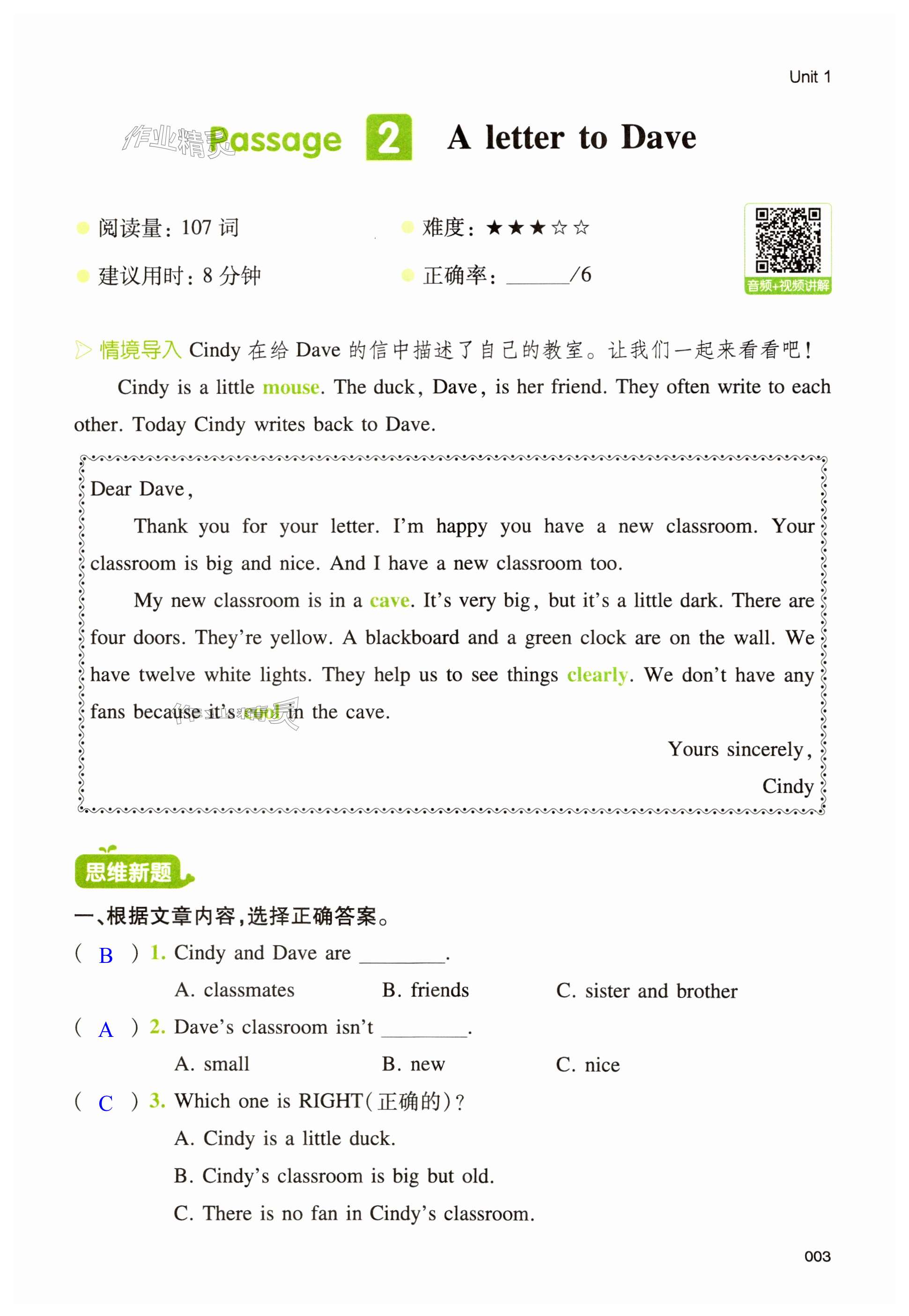 注:目前有些书本章节名称可能整理的还不是很完善,但都是按照顺序排列的,请同学们按照顺序仔细查找。练习册 2024年一本同步阅读四年级英语上册人教版浙江专版 答案主要是用来给同学们做完题方便对答案用的,请勿直接抄袭。