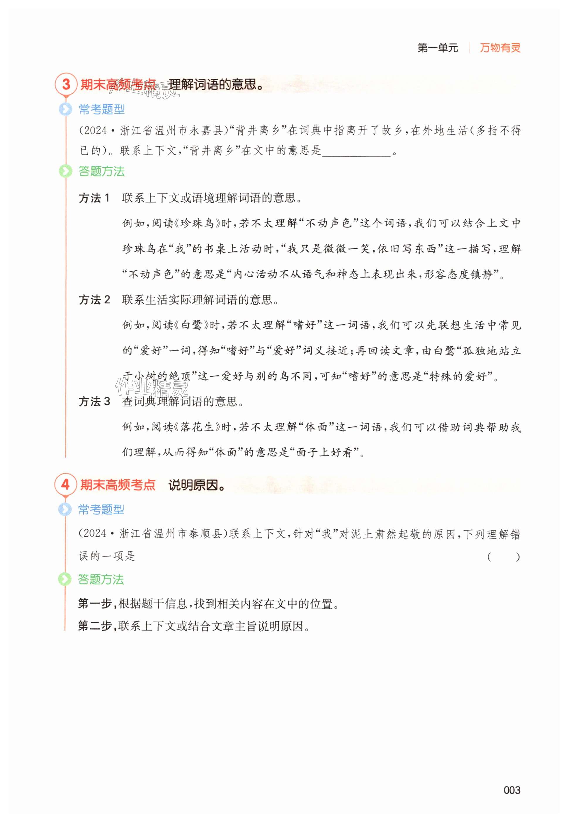 注:目前有些书本章节名称可能整理的还不是很完善,但都是按照顺序排列的,请同学们按照顺序仔细查找。练习册 2024年一本阅读能力训练100分五年级语文上册人教版浙江专版 答案主要是用来给同学们做完题方便对答案用的,请勿直接抄袭。