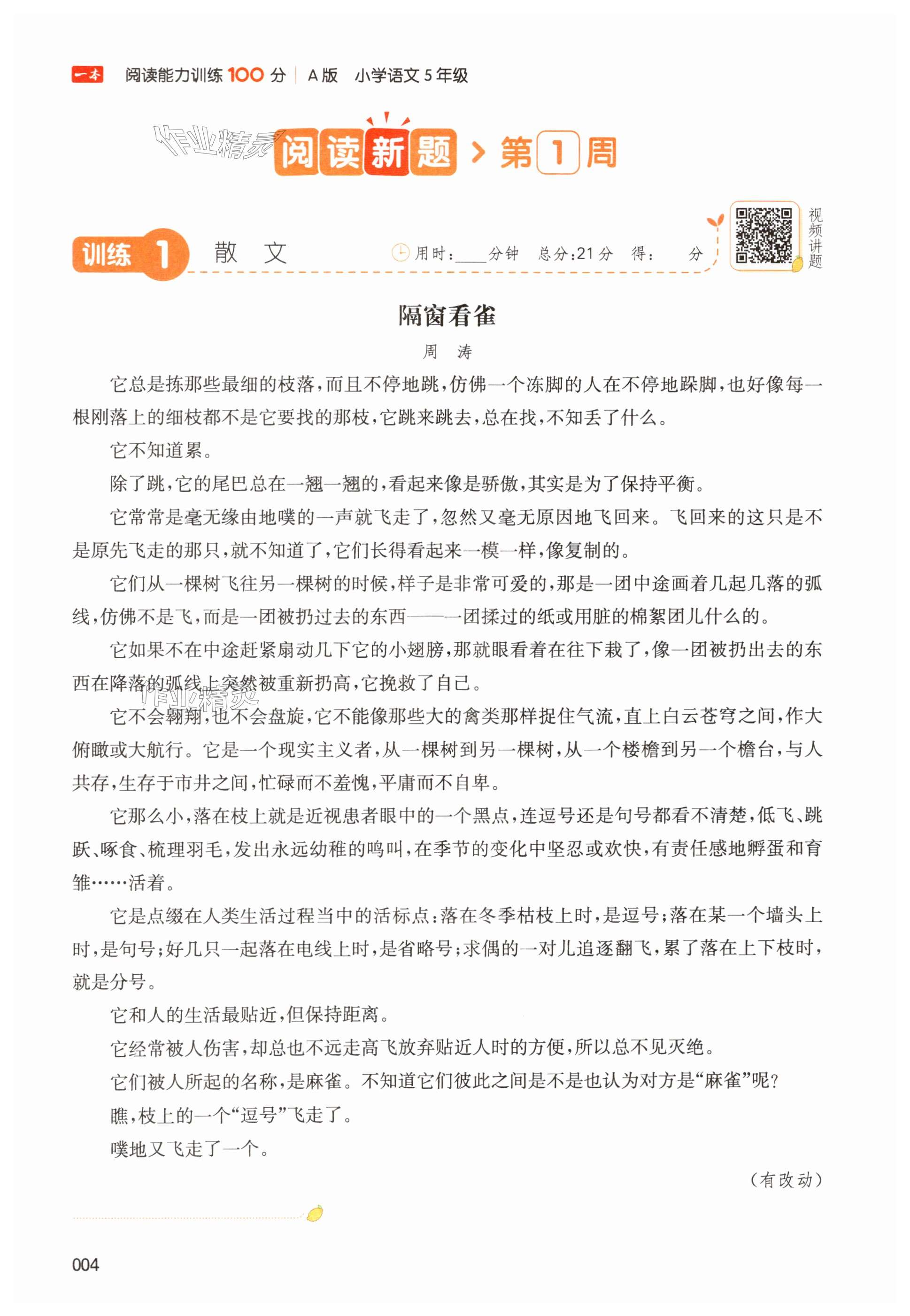 注:目前有些书本章节名称可能整理的还不是很完善,但都是按照顺序排列的,请同学们按照顺序仔细查找。练习册 2024年一本阅读能力训练100分五年级语文上册人教版浙江专版 答案主要是用来给同学们做完题方便对答案用的,请勿直接抄袭。