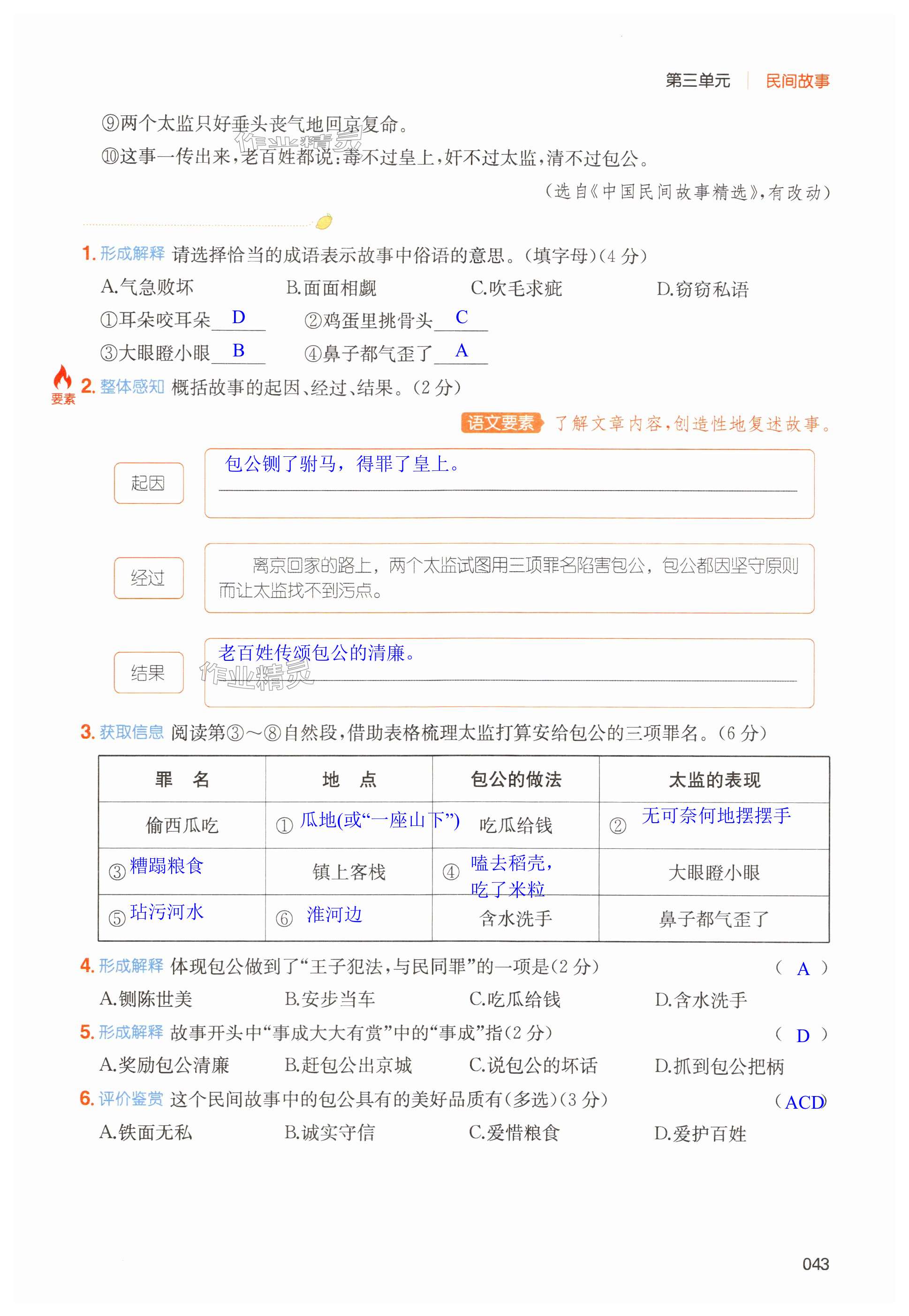 注:目前有些书本章节名称可能整理的还不是很完善,但都是按照顺序排列的,请同学们按照顺序仔细查找。练习册 2024年一本阅读能力训练100分五年级语文上册人教版浙江专版 答案主要是用来给同学们做完题方便对答案用的,请勿直接抄袭。