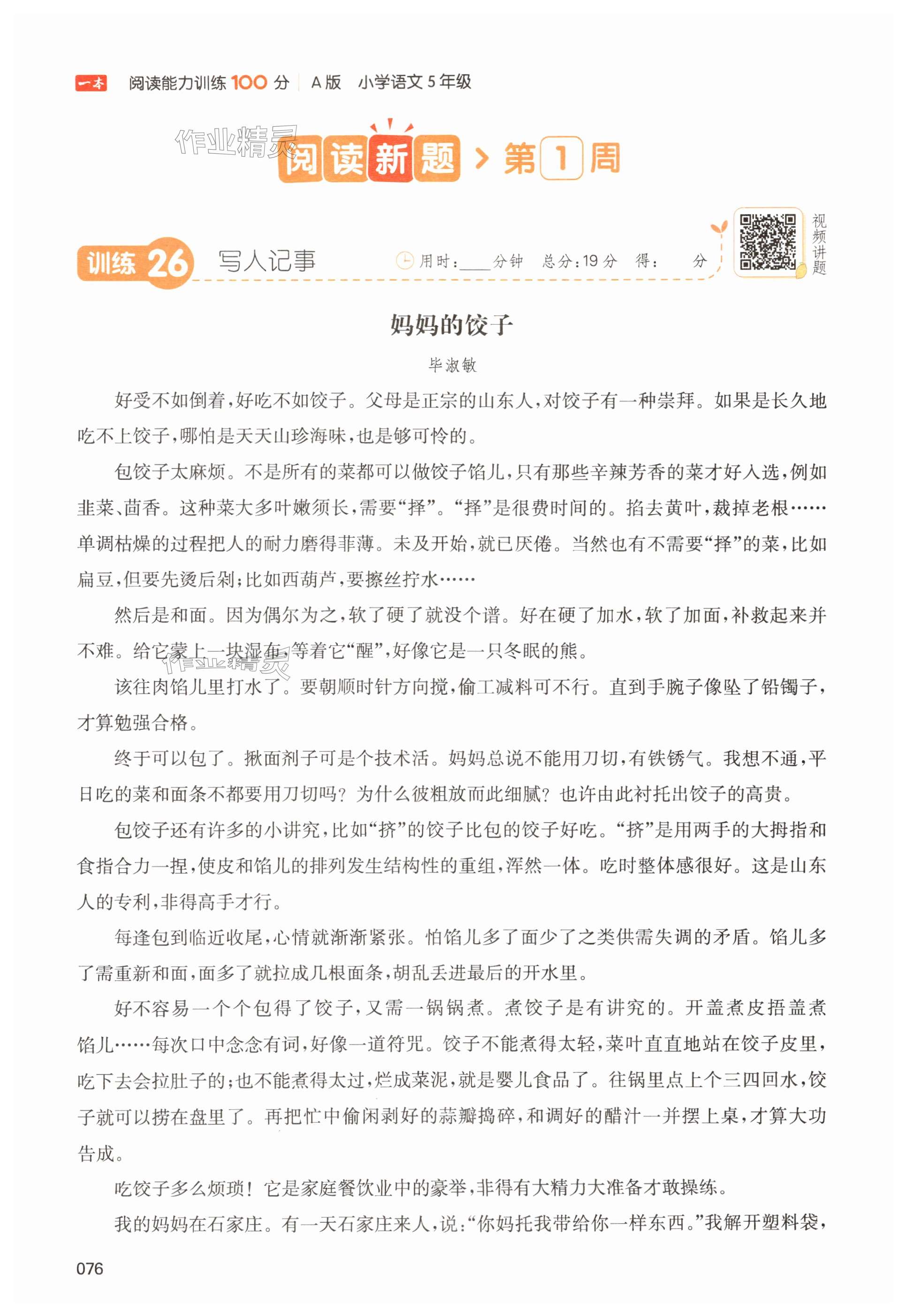 2024年一本阅读能力训练100分五年级语文上册人教版浙江专版