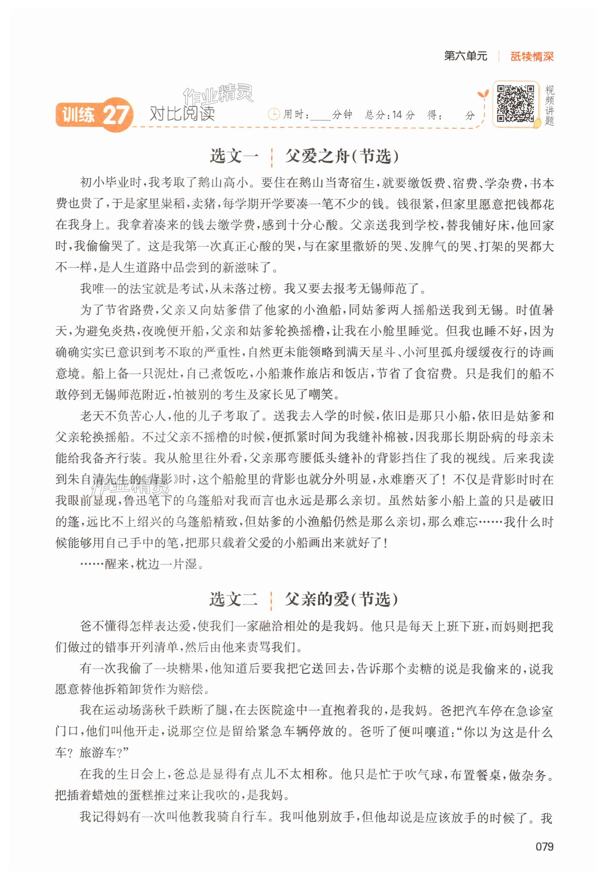 2024年一本阅读能力训练100分五年级语文上册人教版浙江专版