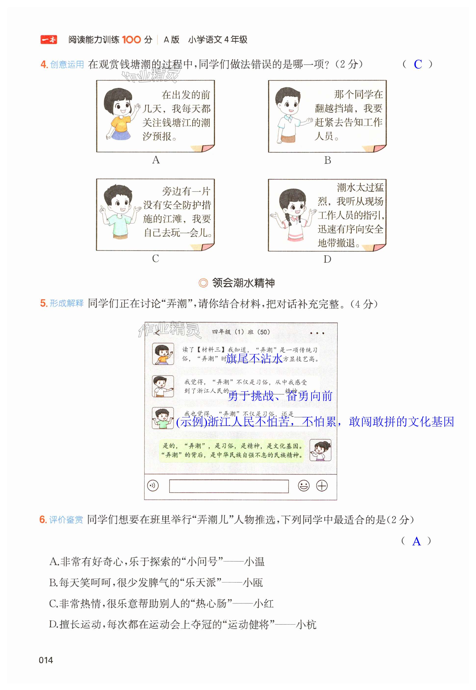 注:目前有些书本章节名称可能整理的还不是很完善,但都是按照顺序排列的,请同学们按照顺序仔细查找。练习册 2024年一本阅读能力训练100分四年级语文上册人教版浙江专版 答案主要是用来给同学们做完题方便对答案用的,请勿直接抄袭。