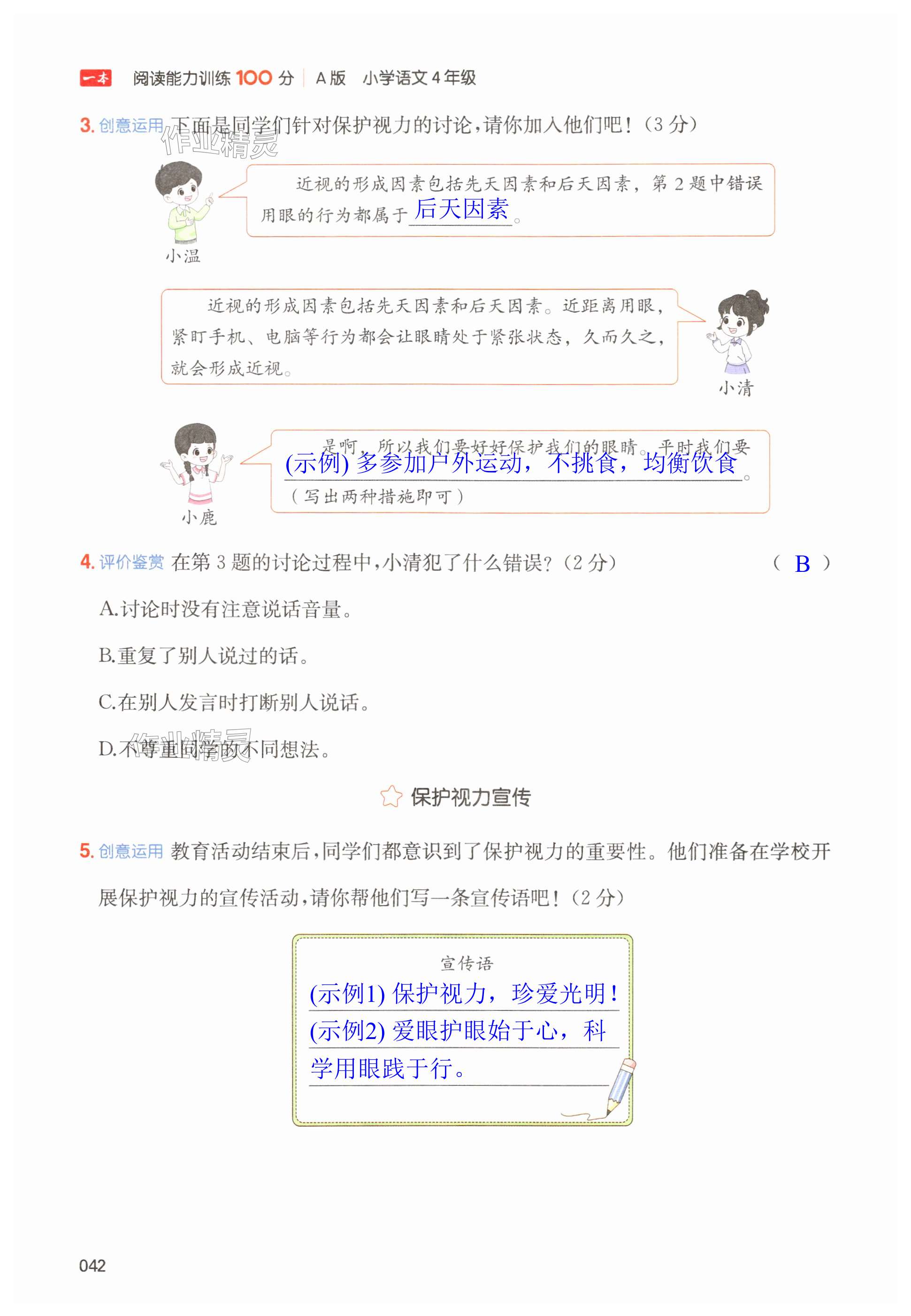 注:目前有些书本章节名称可能整理的还不是很完善,但都是按照顺序排列的,请同学们按照顺序仔细查找。练习册 2024年一本阅读能力训练100分四年级语文上册人教版浙江专版 答案主要是用来给同学们做完题方便对答案用的,请勿直接抄袭。