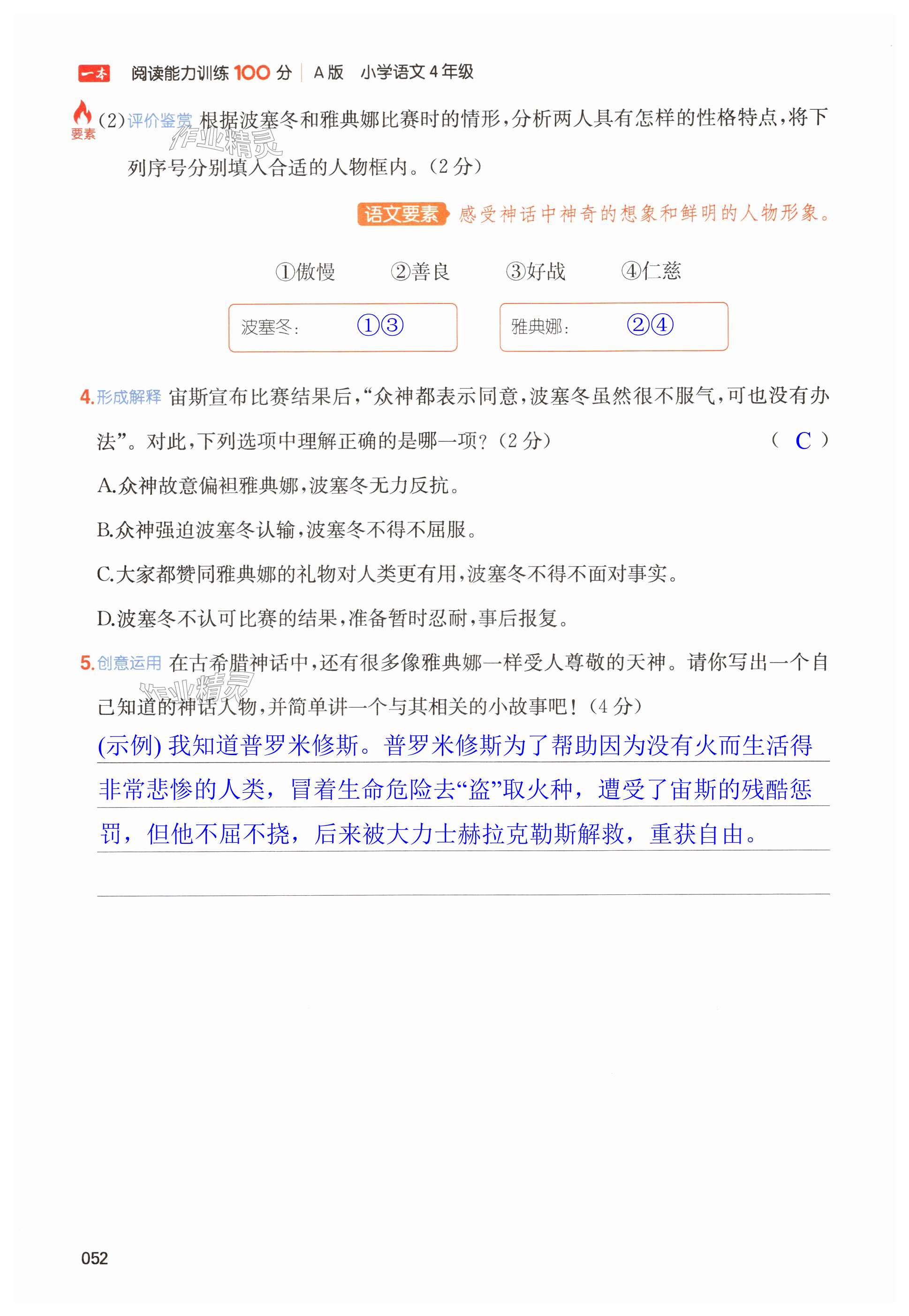 2024年一本阅读能力训练100分四年级语文上册人教版浙江专版