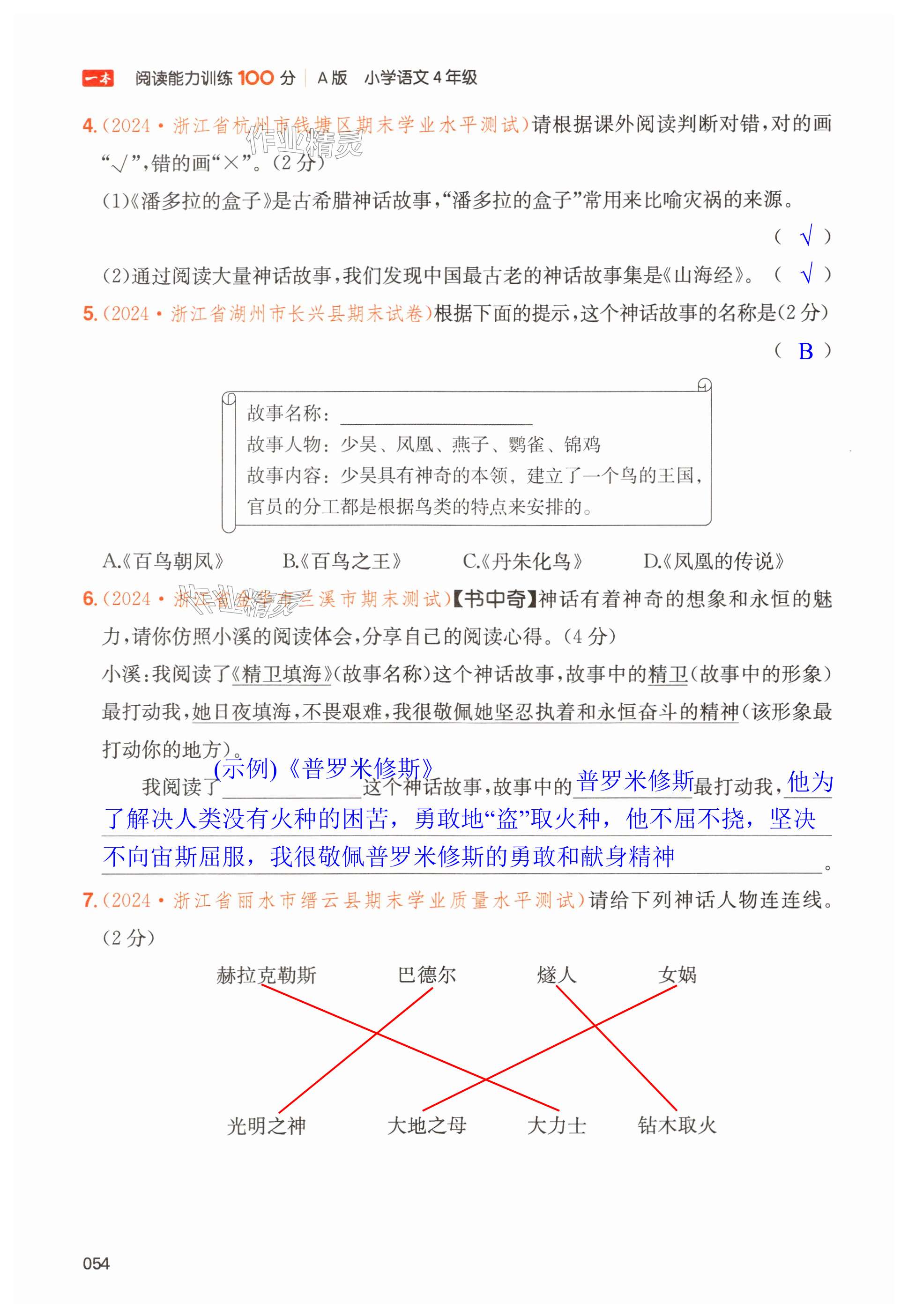 注:目前有些书本章节名称可能整理的还不是很完善,但都是按照顺序排列的,请同学们按照顺序仔细查找。练习册 2024年一本阅读能力训练100分四年级语文上册人教版浙江专版 答案主要是用来给同学们做完题方便对答案用的,请勿直接抄袭。