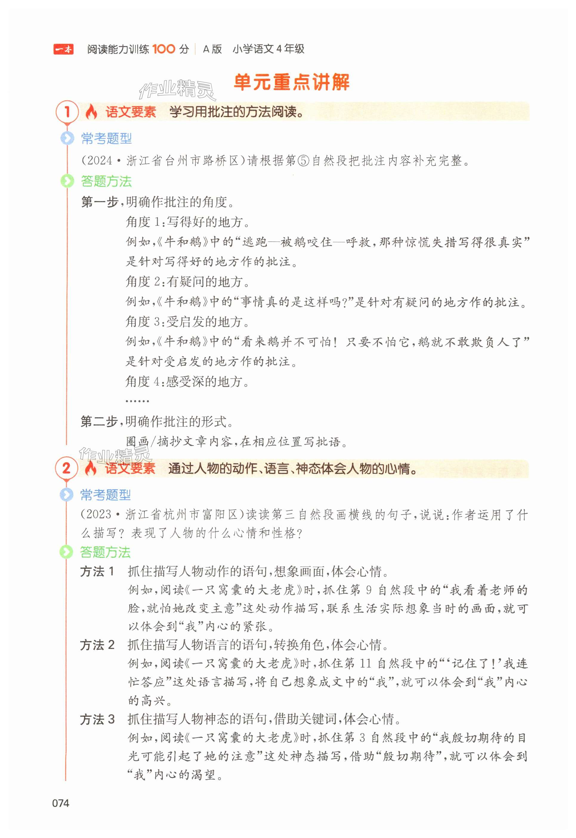 2024年一本阅读能力训练100分四年级语文上册人教版浙江专版
