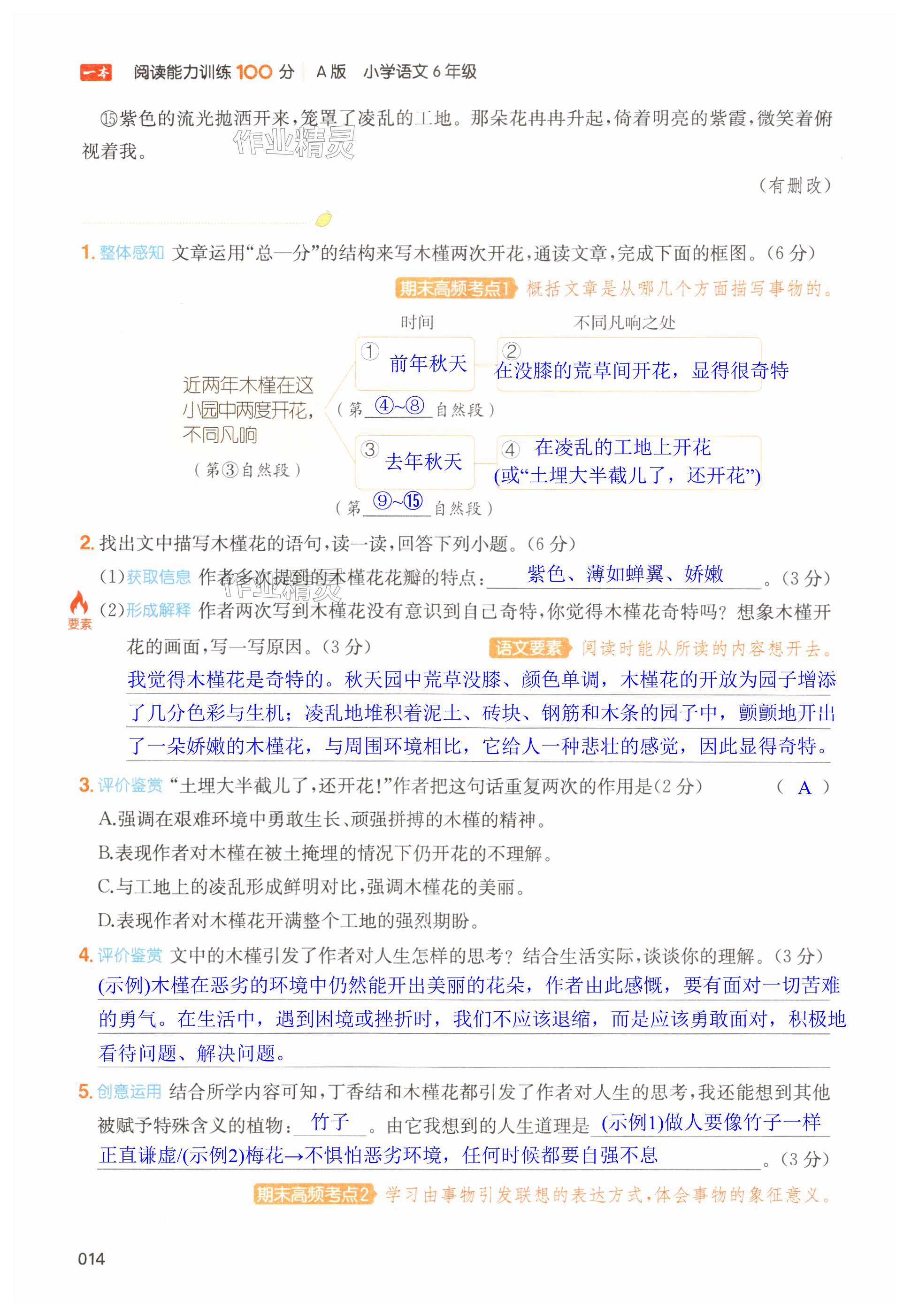 注:目前有些书本章节名称可能整理的还不是很完善,但都是按照顺序排列的,请同学们按照顺序仔细查找。练习册 2024年一本阅读能力训练100分六年级语文上册人教版浙江专版 答案主要是用来给同学们做完题方便对答案用的,请勿直接抄袭。