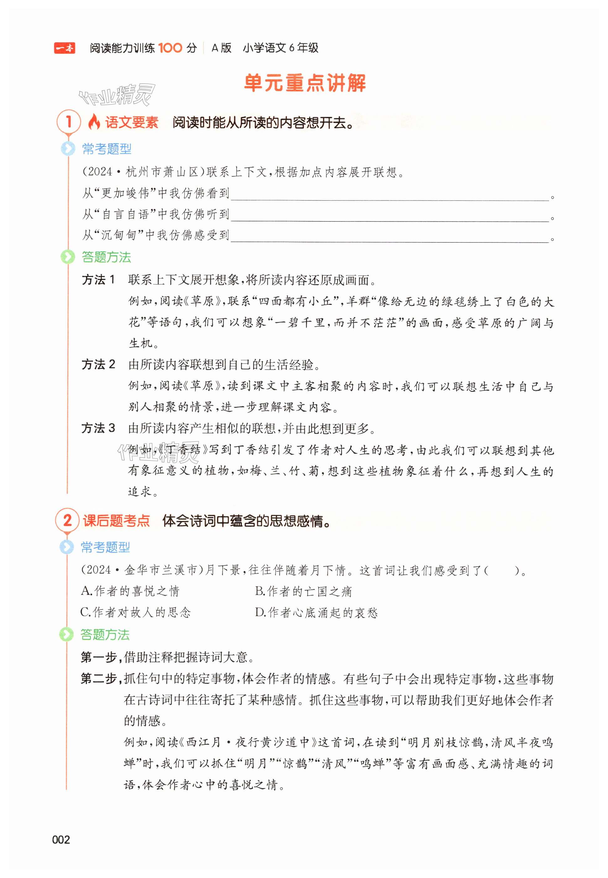 注:目前有些书本章节名称可能整理的还不是很完善,但都是按照顺序排列的,请同学们按照顺序仔细查找。练习册 2024年一本阅读能力训练100分六年级语文上册人教版浙江专版 答案主要是用来给同学们做完题方便对答案用的,请勿直接抄袭。