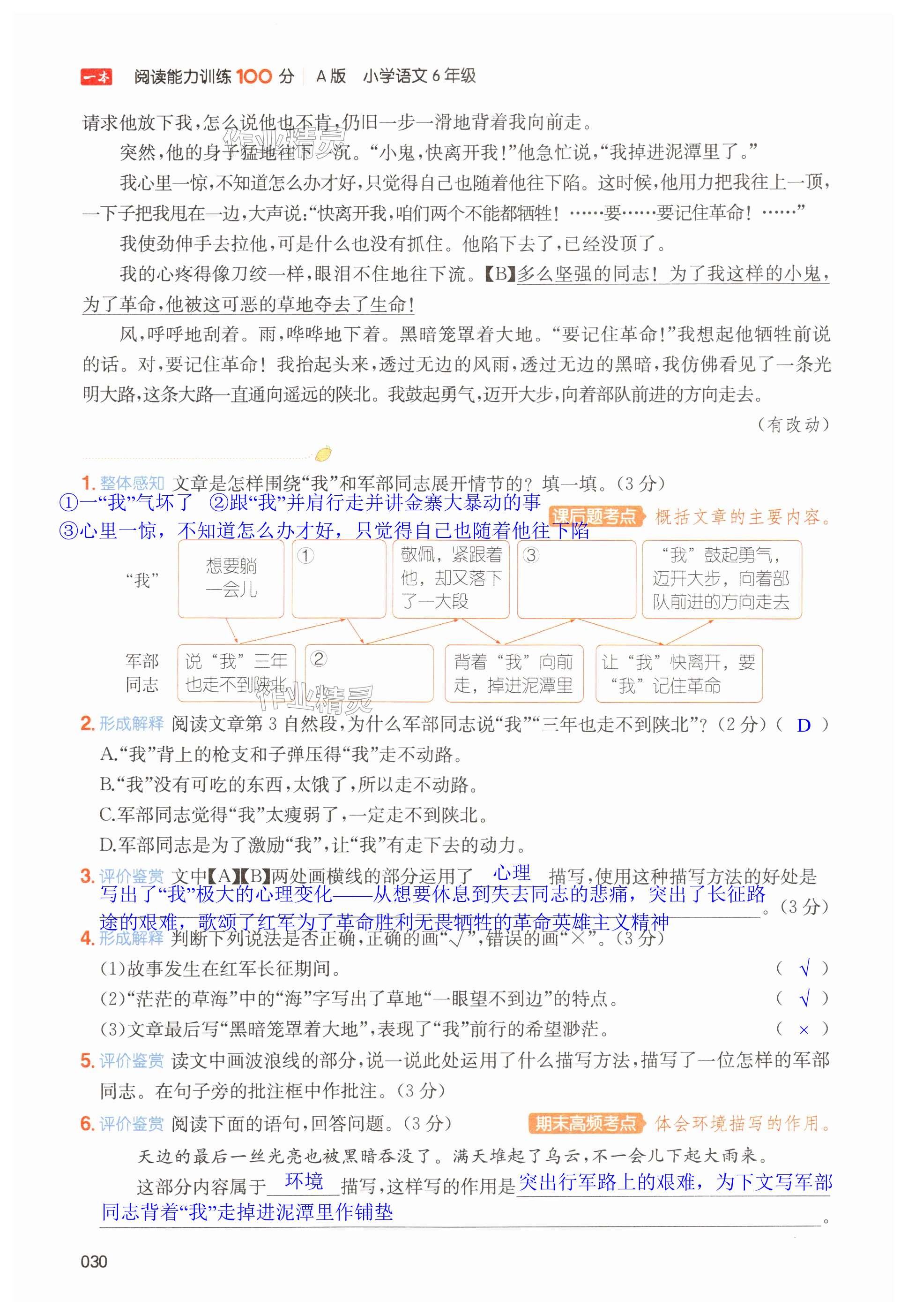 注:目前有些书本章节名称可能整理的还不是很完善,但都是按照顺序排列的,请同学们按照顺序仔细查找。练习册 2024年一本阅读能力训练100分六年级语文上册人教版浙江专版 答案主要是用来给同学们做完题方便对答案用的,请勿直接抄袭。