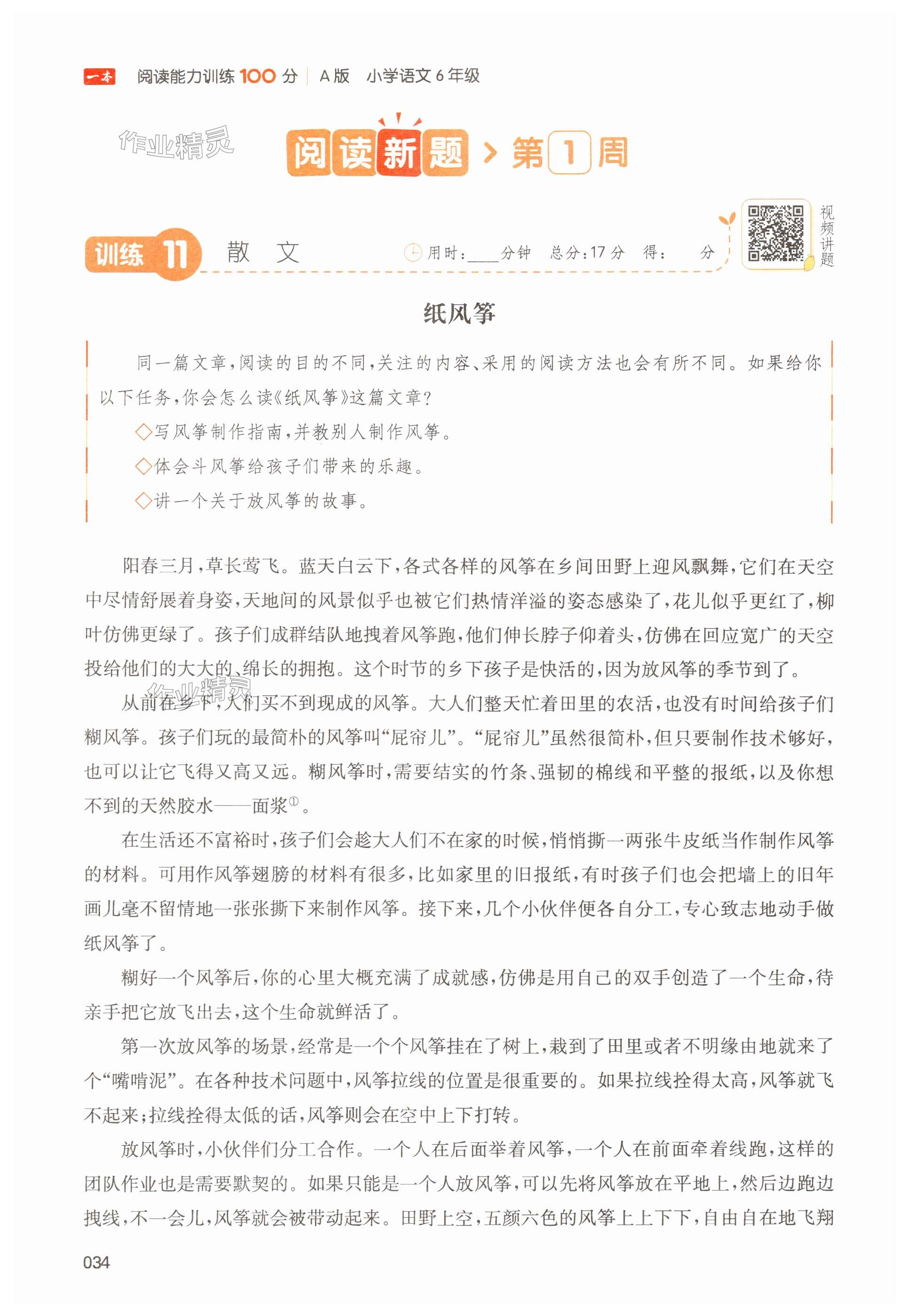 2024年一本阅读能力训练100分六年级语文上册人教版浙江专版