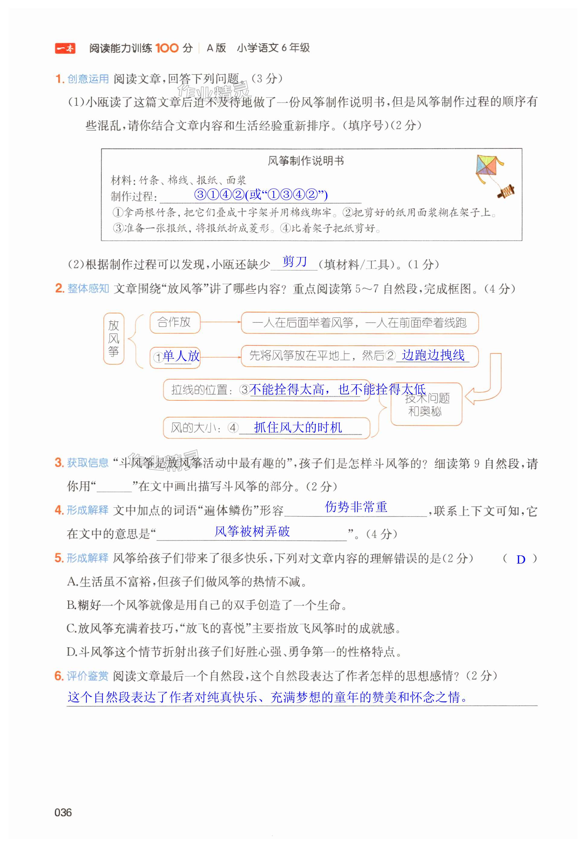 注:目前有些书本章节名称可能整理的还不是很完善,但都是按照顺序排列的,请同学们按照顺序仔细查找。练习册 2024年一本阅读能力训练100分六年级语文上册人教版浙江专版 答案主要是用来给同学们做完题方便对答案用的,请勿直接抄袭。