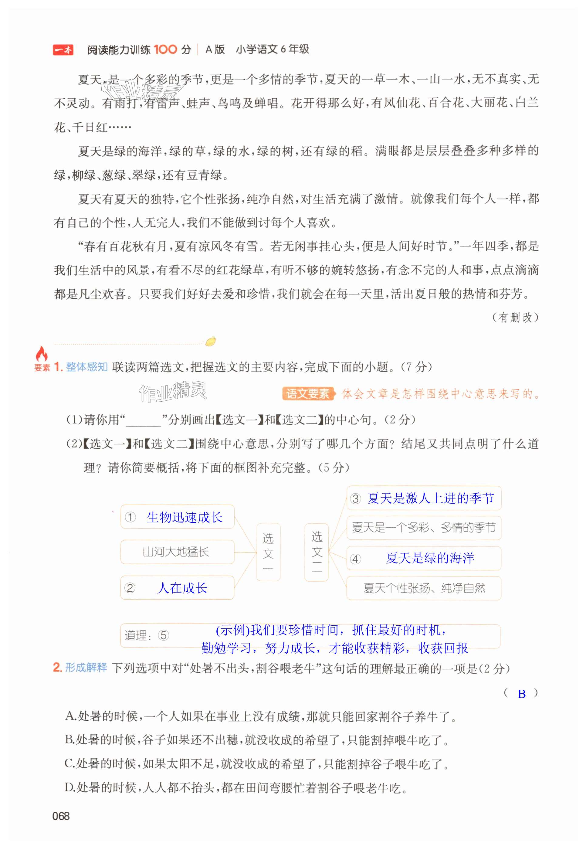 注:目前有些书本章节名称可能整理的还不是很完善,但都是按照顺序排列的,请同学们按照顺序仔细查找。练习册 2024年一本阅读能力训练100分六年级语文上册人教版浙江专版 答案主要是用来给同学们做完题方便对答案用的,请勿直接抄袭。