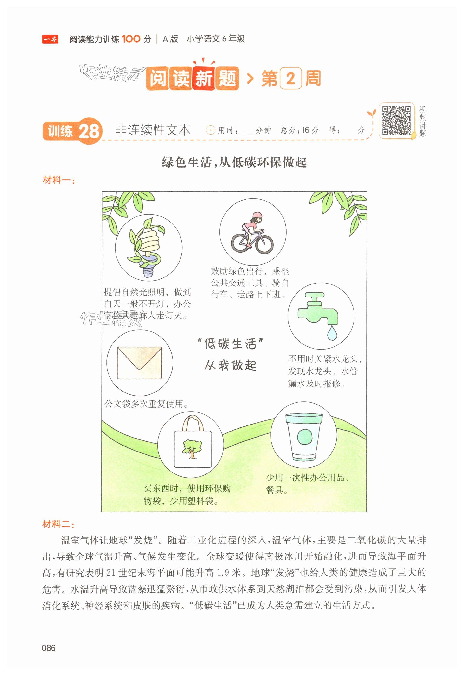 2024年一本阅读能力训练100分六年级语文上册人教版浙江专版