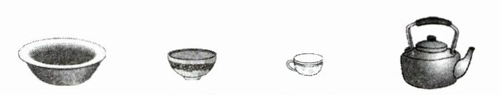 ① 茶杯 ② 矿泉水瓶 ③ 铁锅