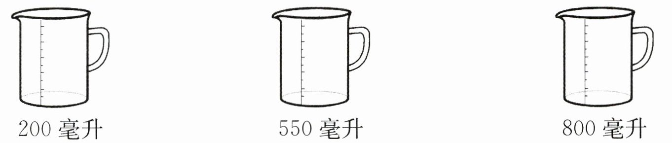 我很棒 5. 下面的容器容量正好都是 1 升,请你分别标出 200 毫升、550毫升和 800 毫升。