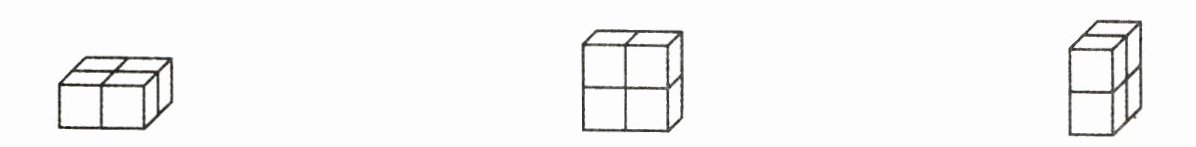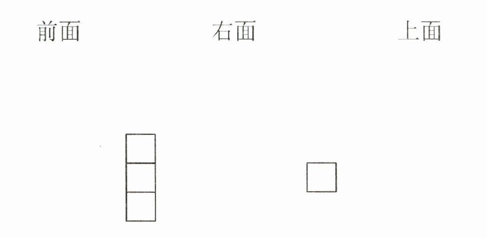 3. 用8个同样大的正方体摆成如右的长方体,再从前面、右面和上面分别看一看,在方格纸上画出看到的图形。