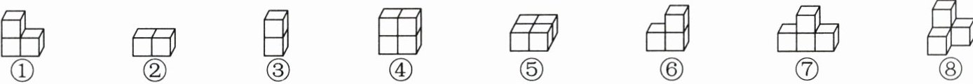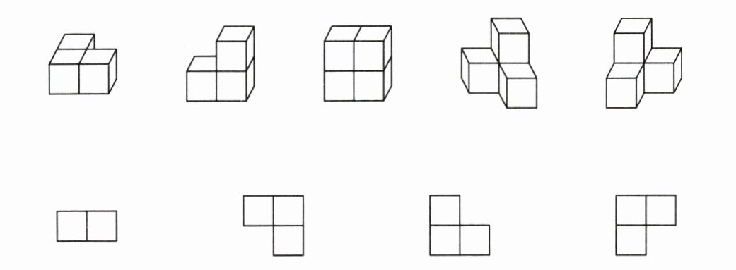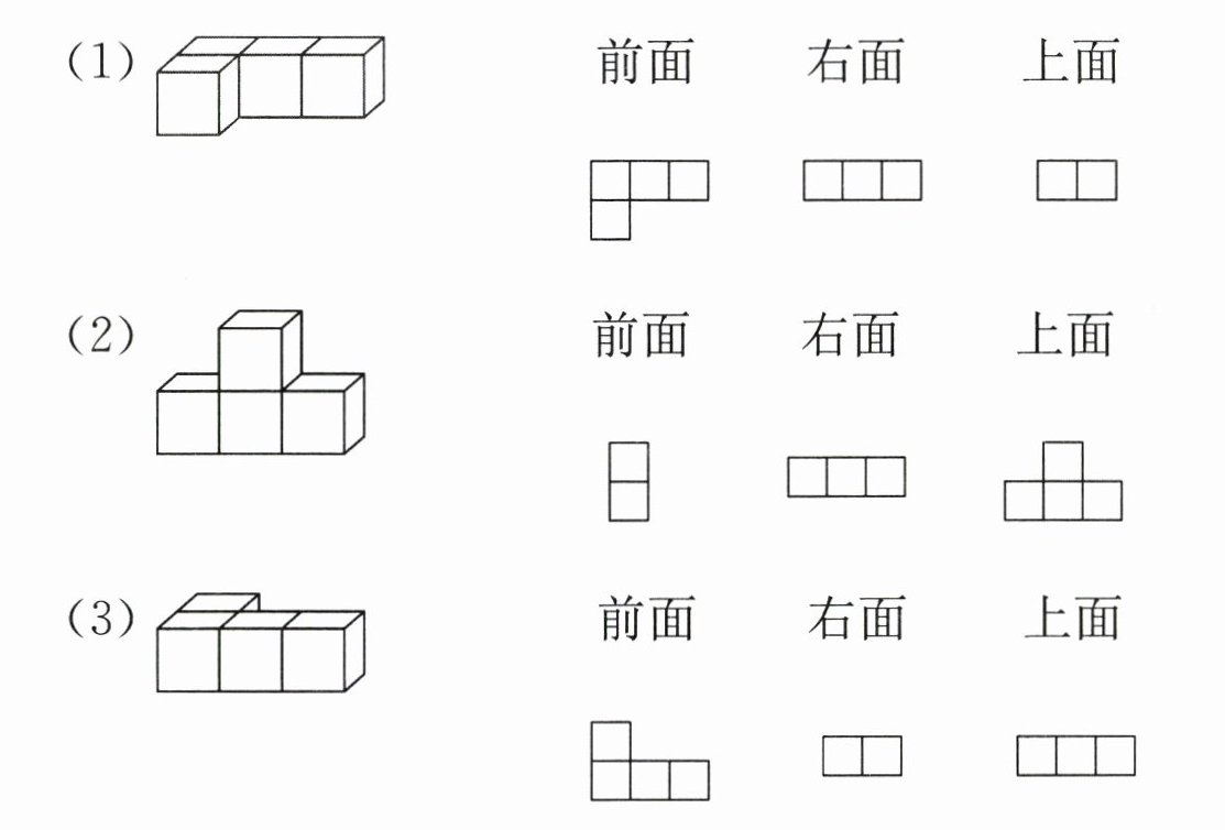 1. 用4个同样大的正方体摆成左边的样子,右边的图形分别是从哪一面看到的?请连一连。