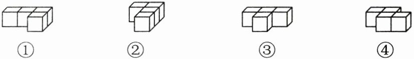 2. 小明用同样的 4 个正方体摆出了下面几种物体。