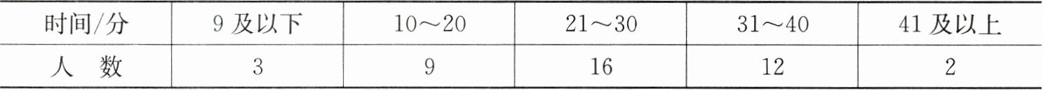 |时间/分|9及以下|10~20|21~30|31~40|41及以上|