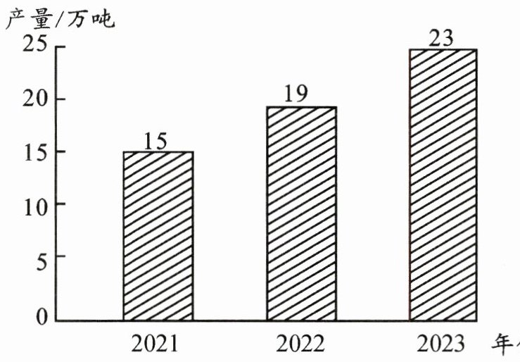 (3) 2022年的产量比2023年少( )万吨,2021年的产量比2023年少( )万吨。