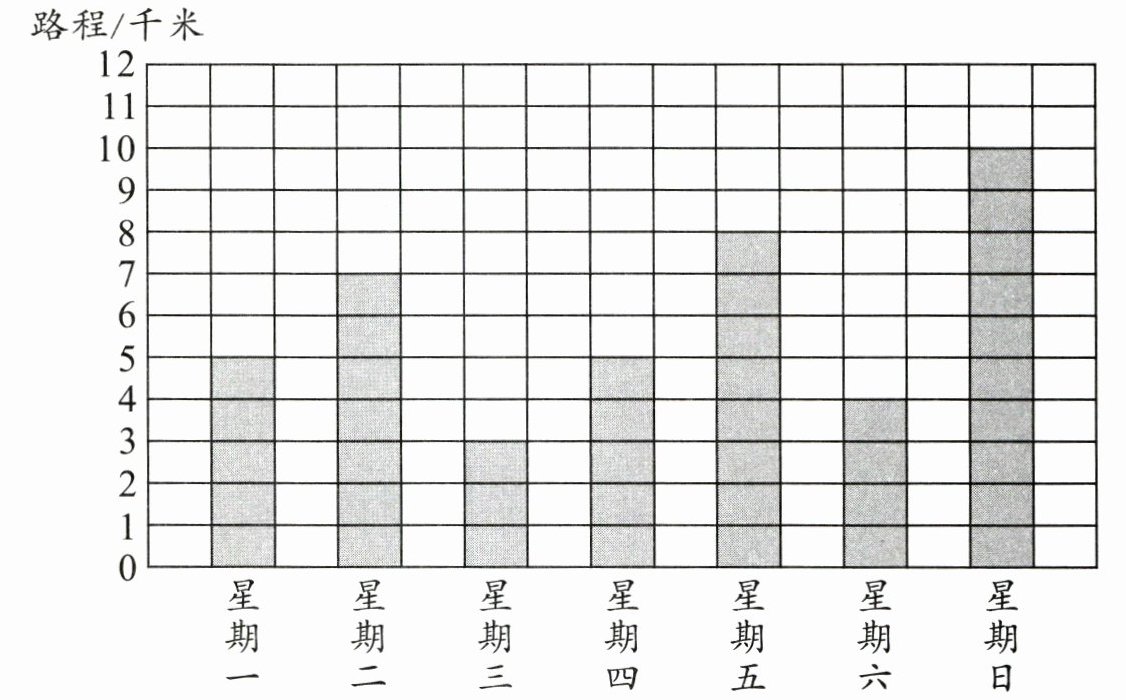 下面是周叔叔一个星期跑步路程统计图。