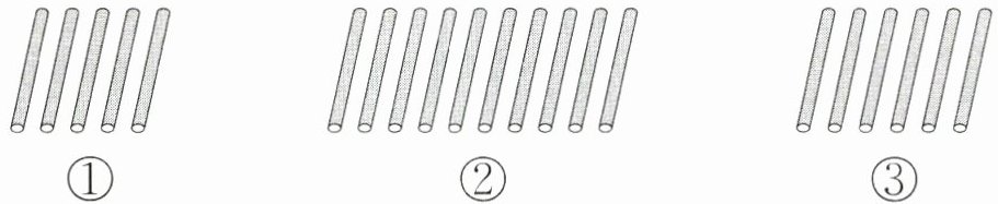 5. 下面有3堆小棒,要使每堆的根数相等,可以从第( )堆移动( )根到第( )堆,再从第( )堆移动( )根到第( )堆,平均每堆有( )根。