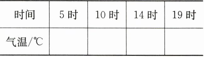 2. 下面是气温自测仪记录的某一天四个不同时间的气温情况,请填表。