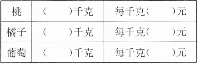 2. 小华从水果店买了 3 千克桃,小红买了 5 千克葡萄,小方买了 4 千克橘子。已知每千克桃 14 元,每千克葡萄 16 元,每千克橘子 10 元。(先整理题中的条件,再解答)