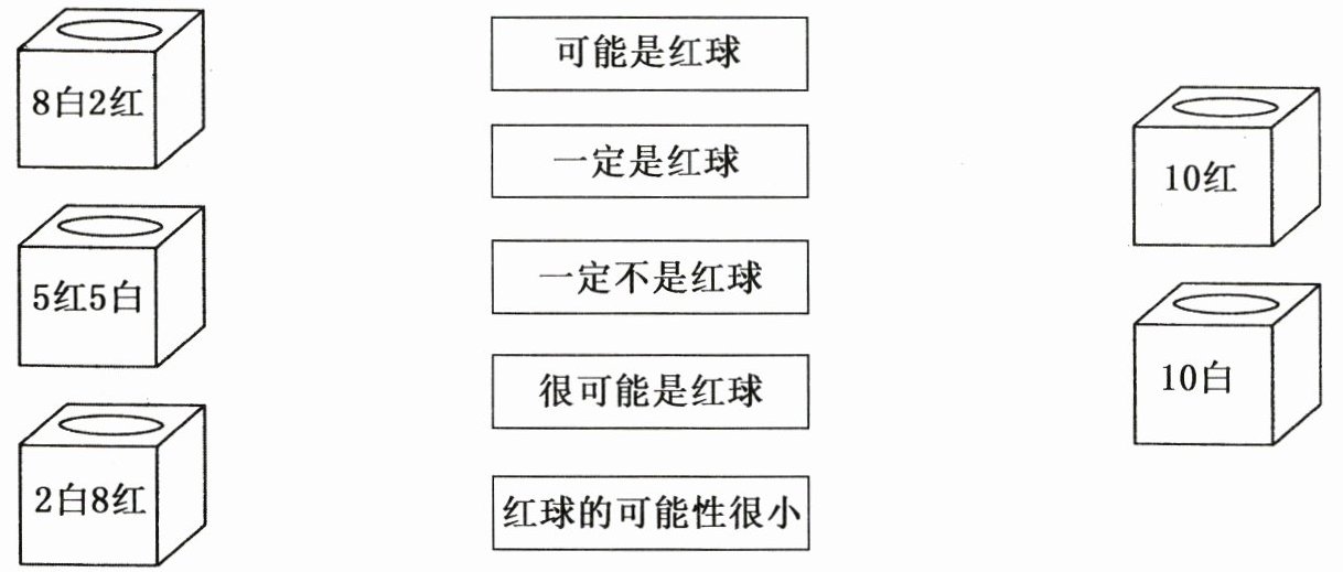 3. 从下面的箱子里分别摸1个球,结果是哪个? 连一连。