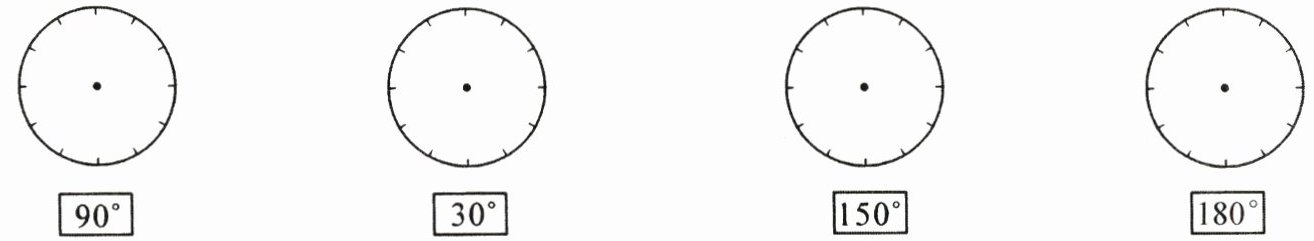 4. 在钟面上画指针,使时针和分针形成指定度数的角。