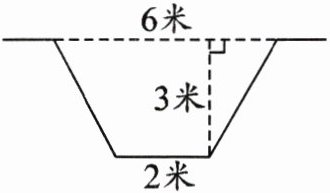 3. 一条水渠的横截面是一个梯形(如图),渠口宽 6 米,渠底宽 2 米,渠深 3 米。水渠的横截面面积是多少平方米?