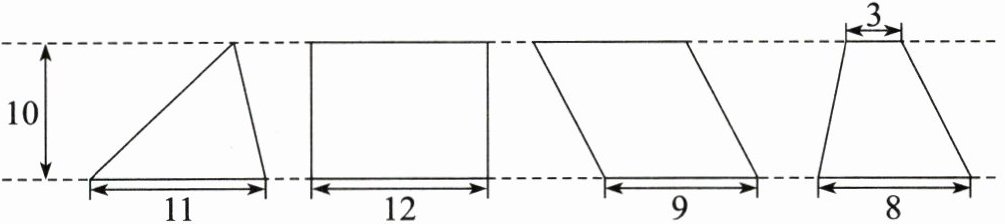 3. 在方格纸上画三个与平行四边形面积相等的梯形。(每个小方格表示 1 平方厘米)