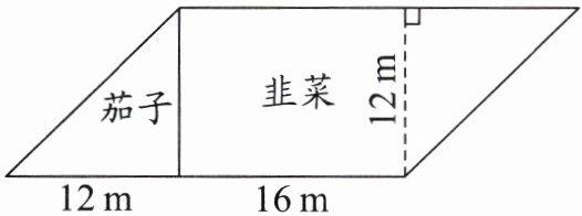 2. 有一块平行四边形地(如下图),分成两块种菜,第一块种茄子,第二块种韭菜。两种菜各占地多少平方米?