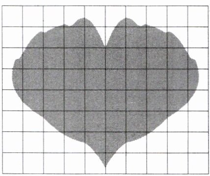 2. 如右图是一片银杏树叶的平面图。先分别数数整格和不满整格的各有多少,再算出这片树叶的面积大约是多少平方厘米。(每个小方格表示 1 平方厘米)